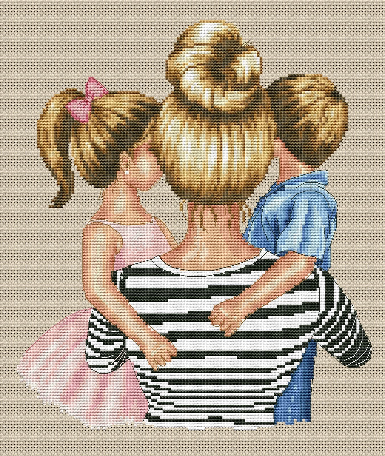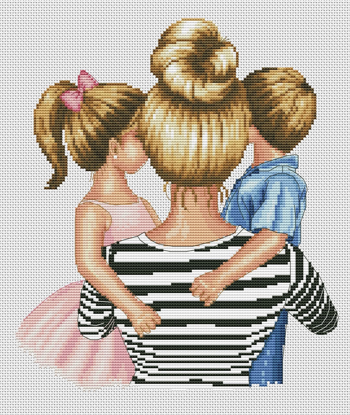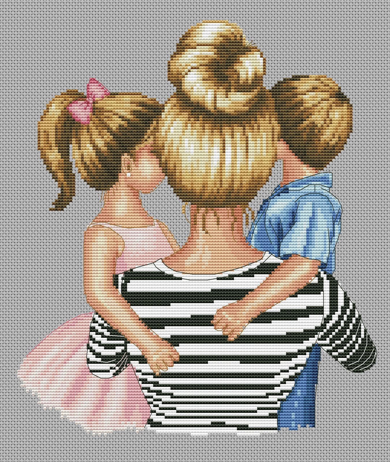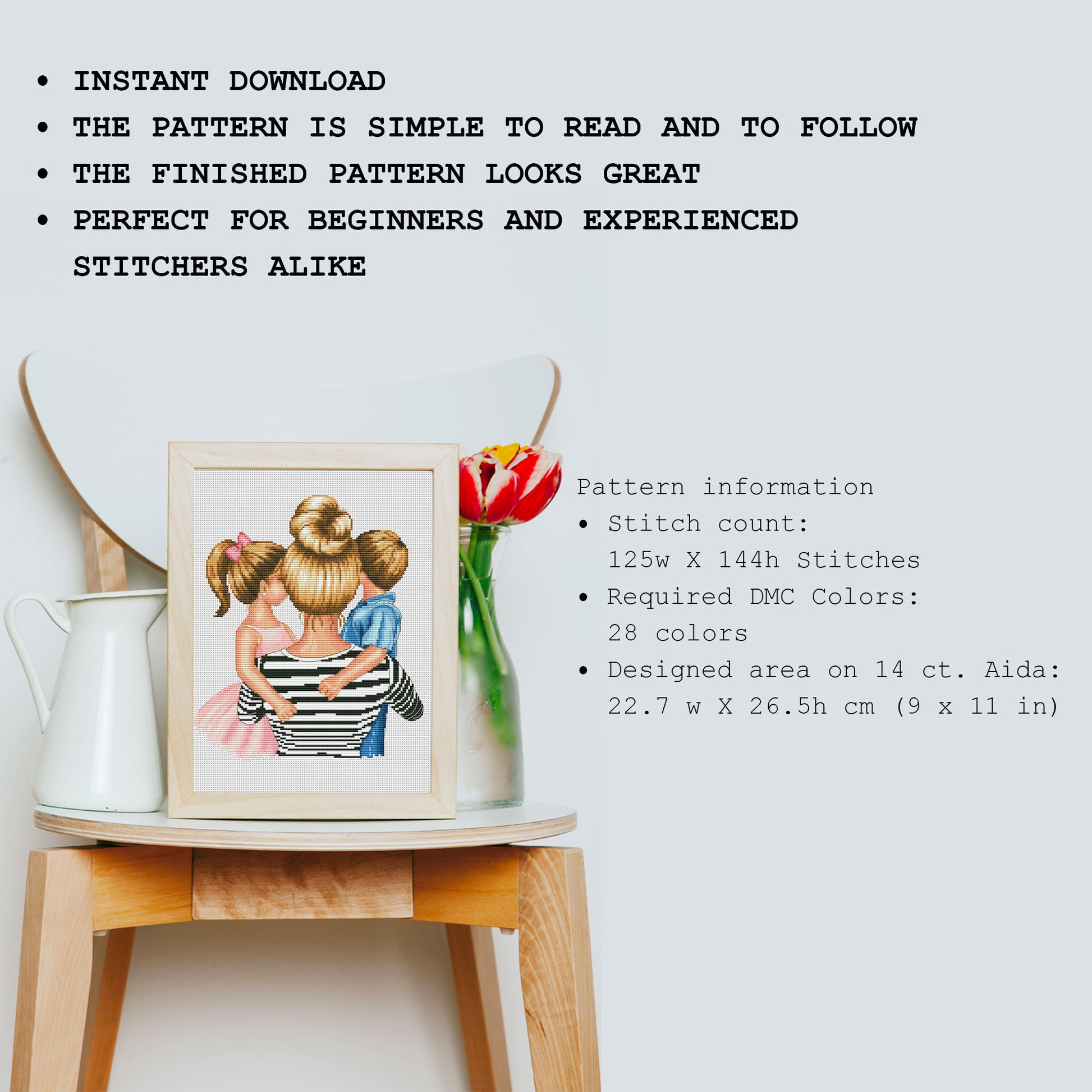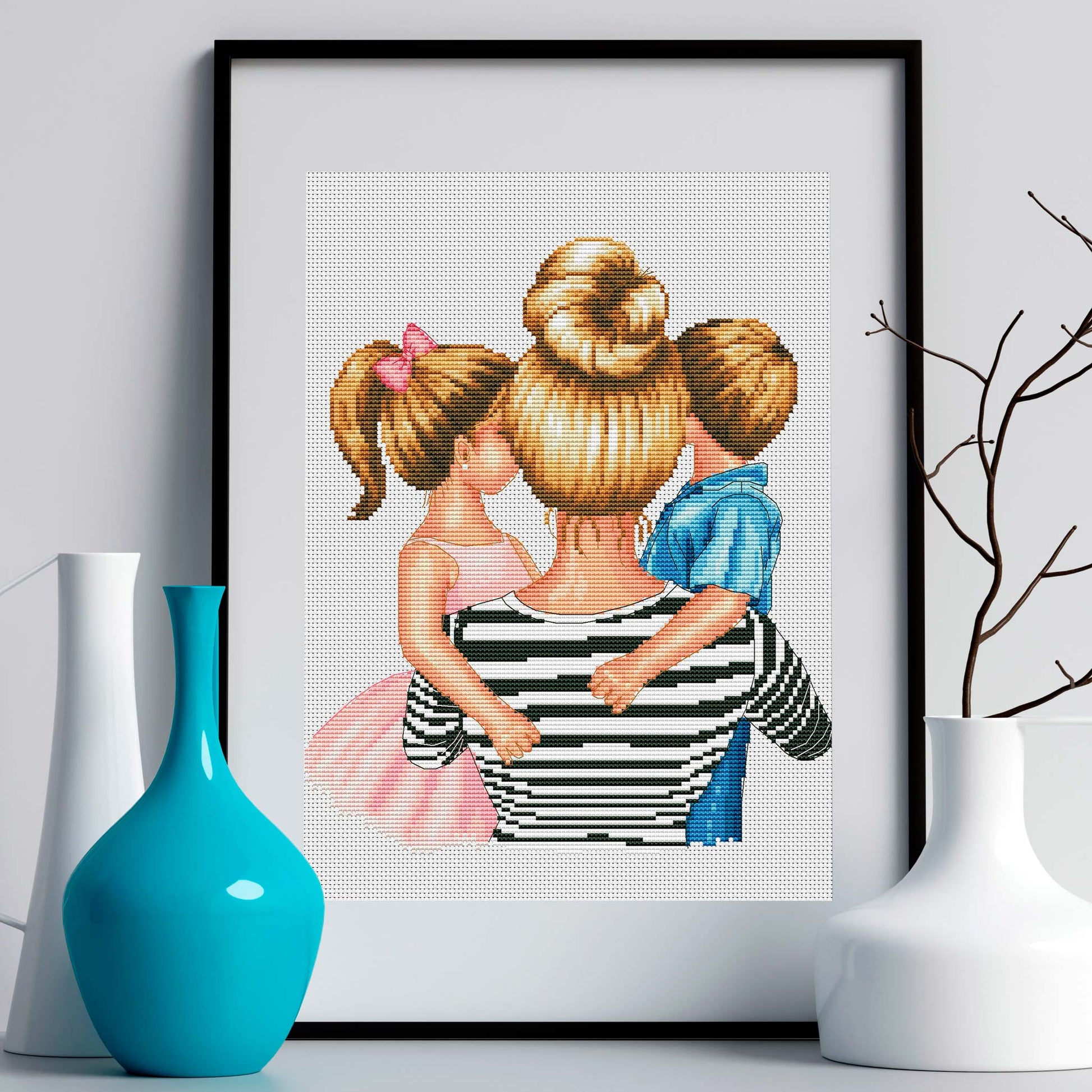 π Create a heartfelt gift with your own hands! This digital cross stitch pattern allows you to stitch a beautiful portrait of a mother with her children. After purchase, you will receive an instant download and can start stitching right away!