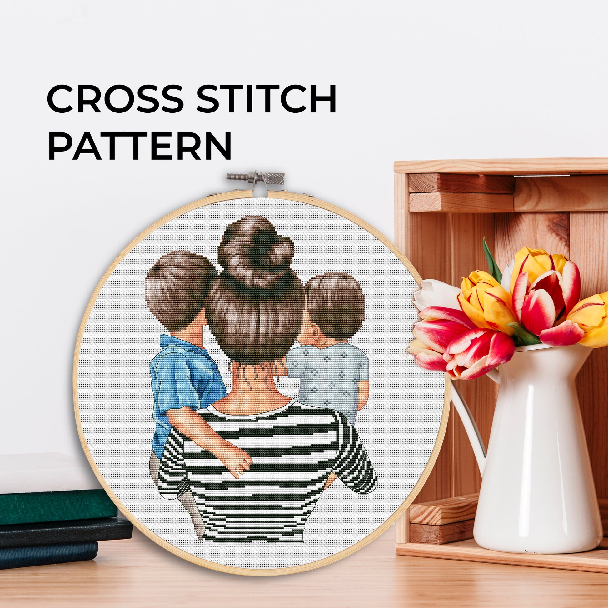 πŸ’– Create a heartfelt gift with your own hands! This digital cross stitch pattern allows you to stitch a beautiful portrait of a mother with her children. After purchase, you will receive an instant download and can start stitching right away!