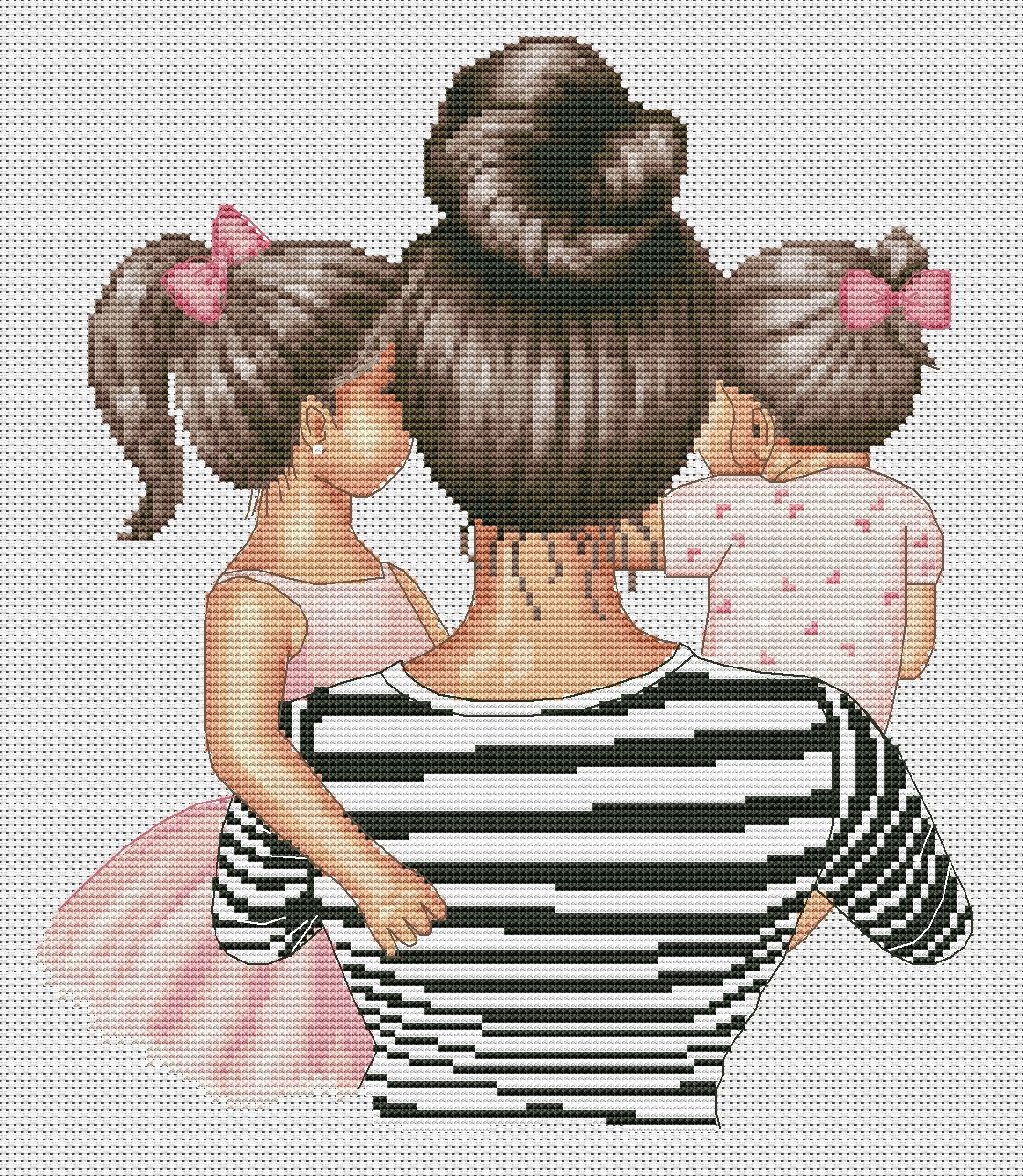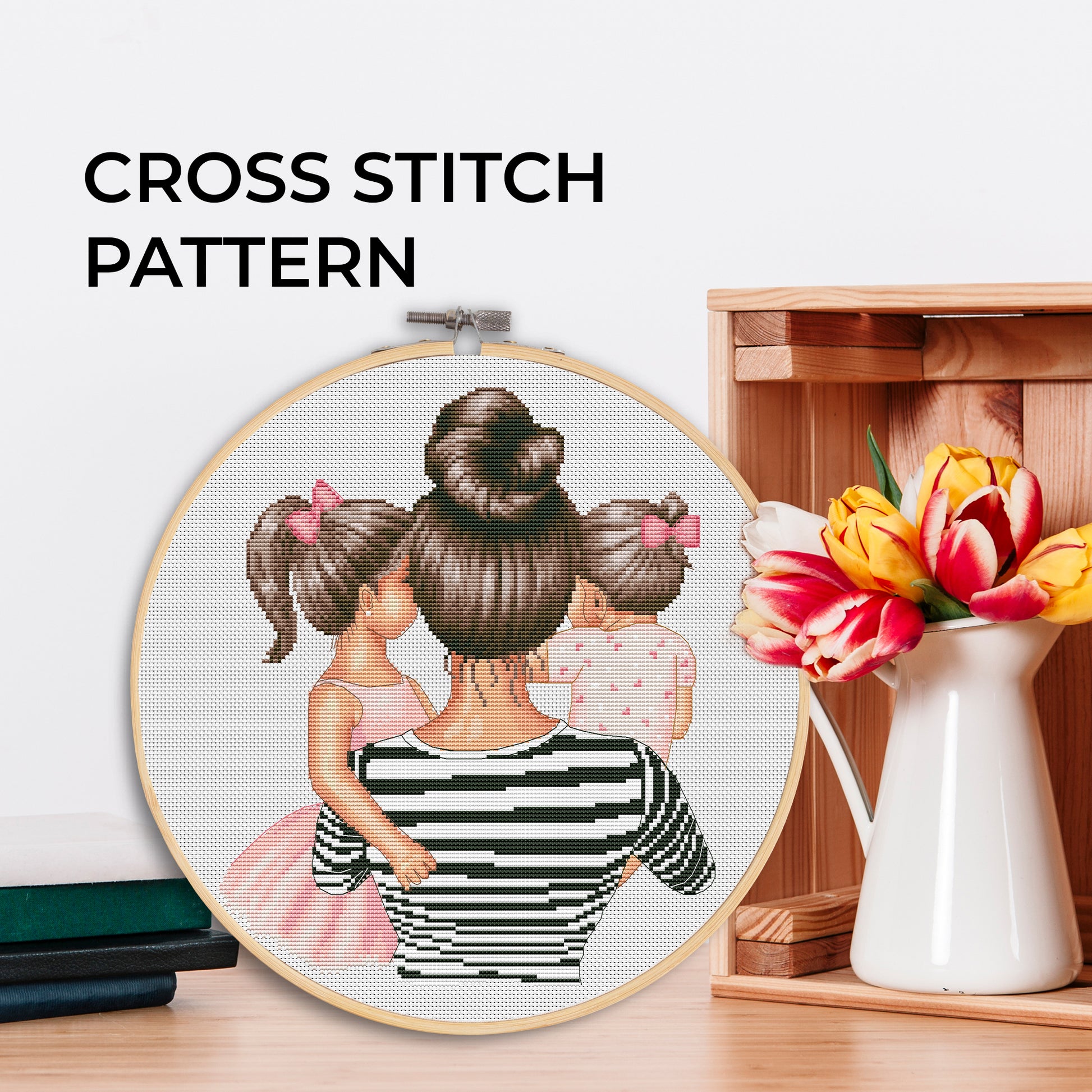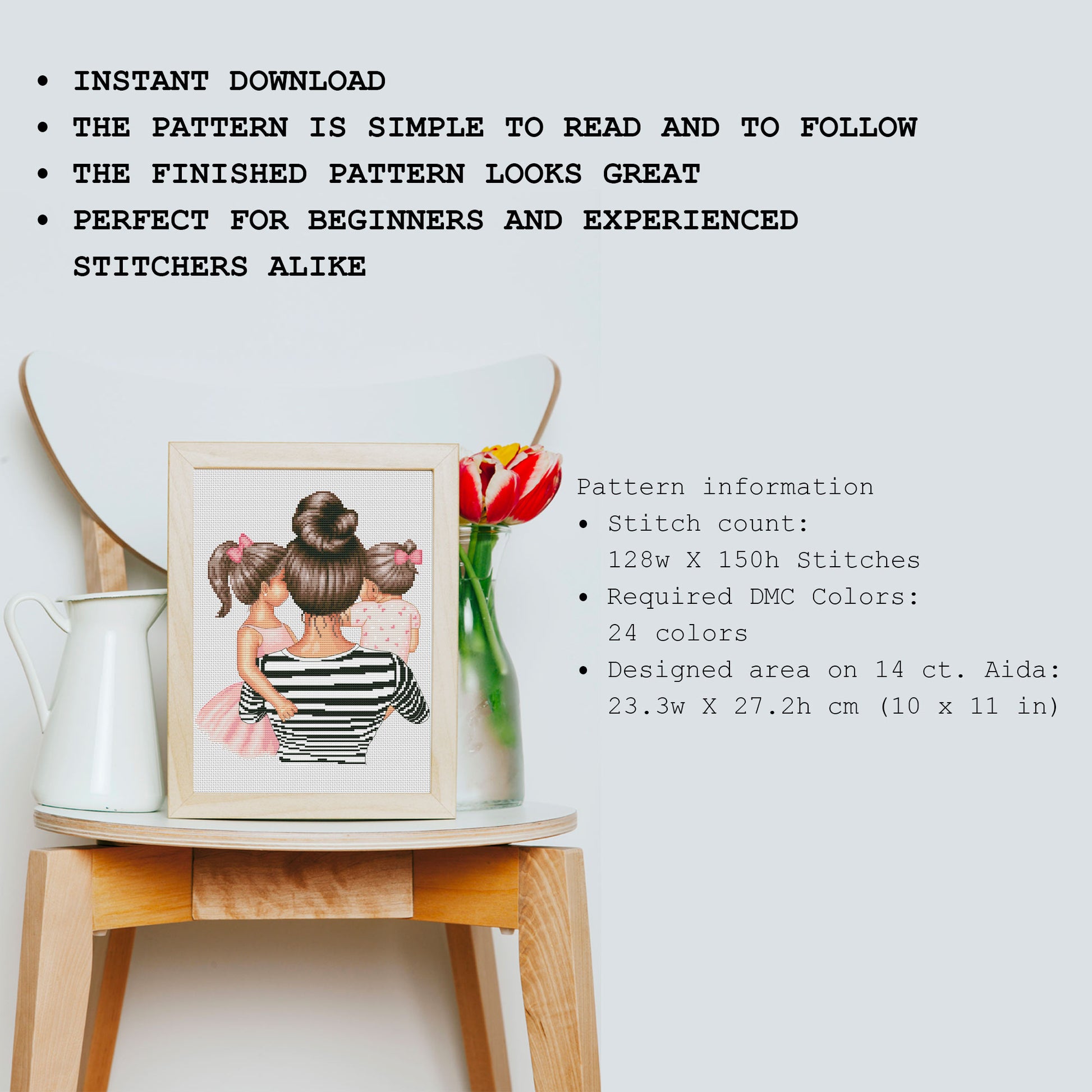 πŸ’– Create a heartfelt gift with your own hands! This digital cross stitch pattern allows you to stitch a beautiful portrait of a mother with her children. After purchase, you will receive an instant download and can start stitching right away!