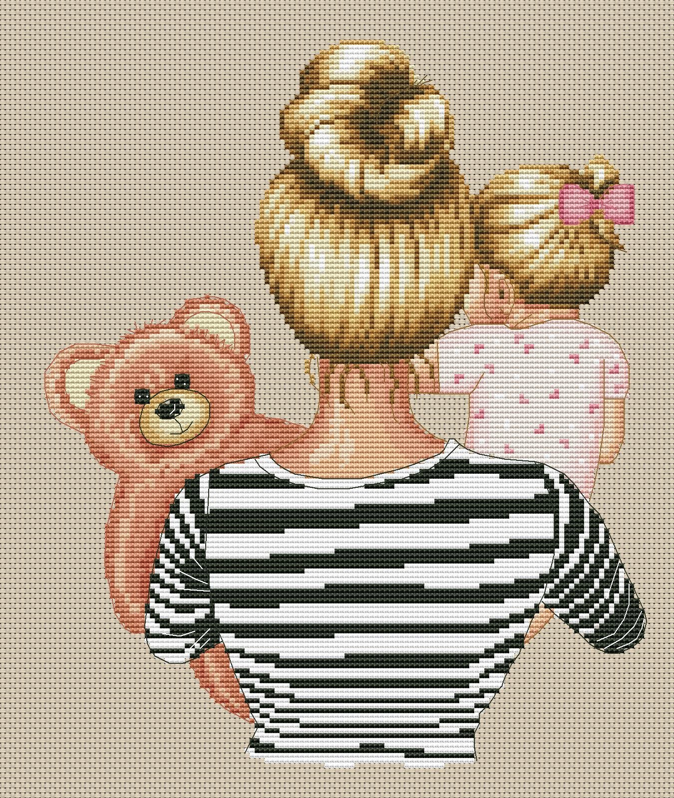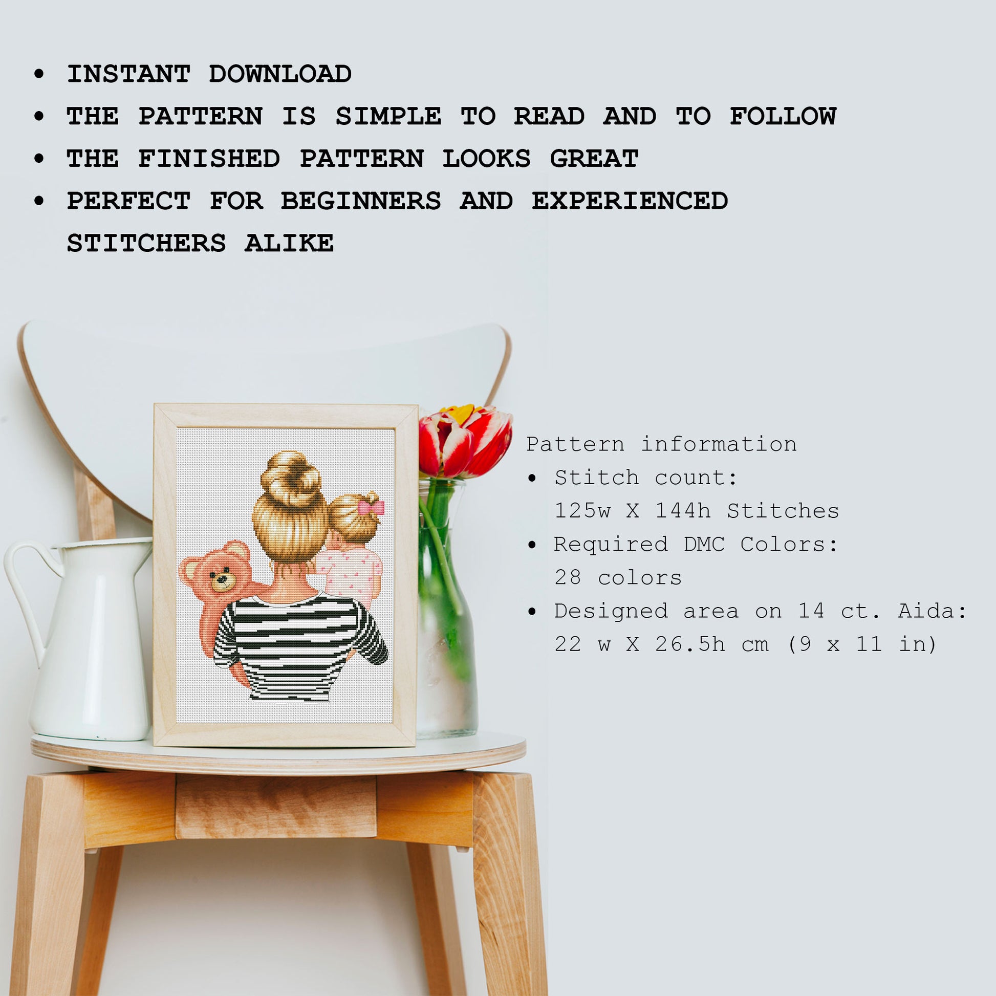 π Create a heartfelt gift with your own hands! This digital cross stitch pattern allows you to stitch a beautiful portrait of a mother with her children. After purchase, you will receive an instant download and can start stitching right away!