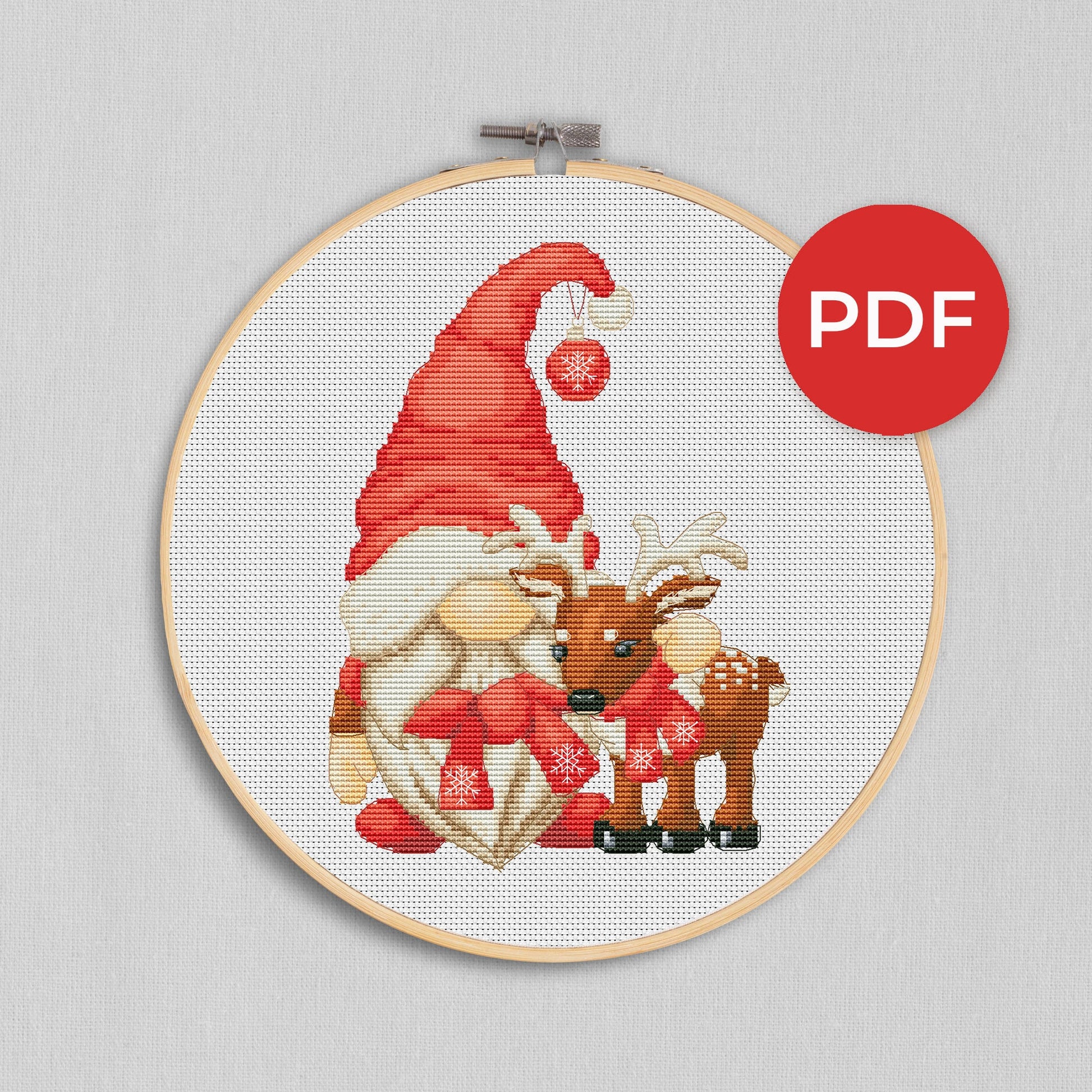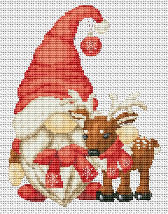 Christmas Gnome with Reindeer Cross Stitch Pattern