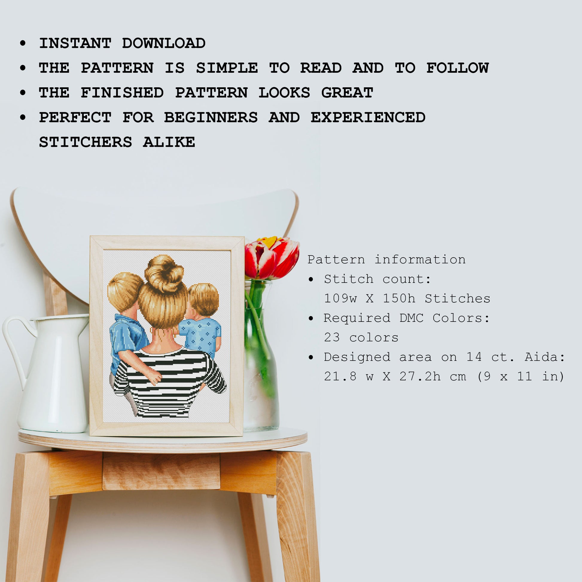 π Create a heartfelt gift with your own hands! This digital cross stitch pattern allows you to stitch a beautiful portrait of a mother with her children. After purchase, you will receive an instant download and can start stitching right away!