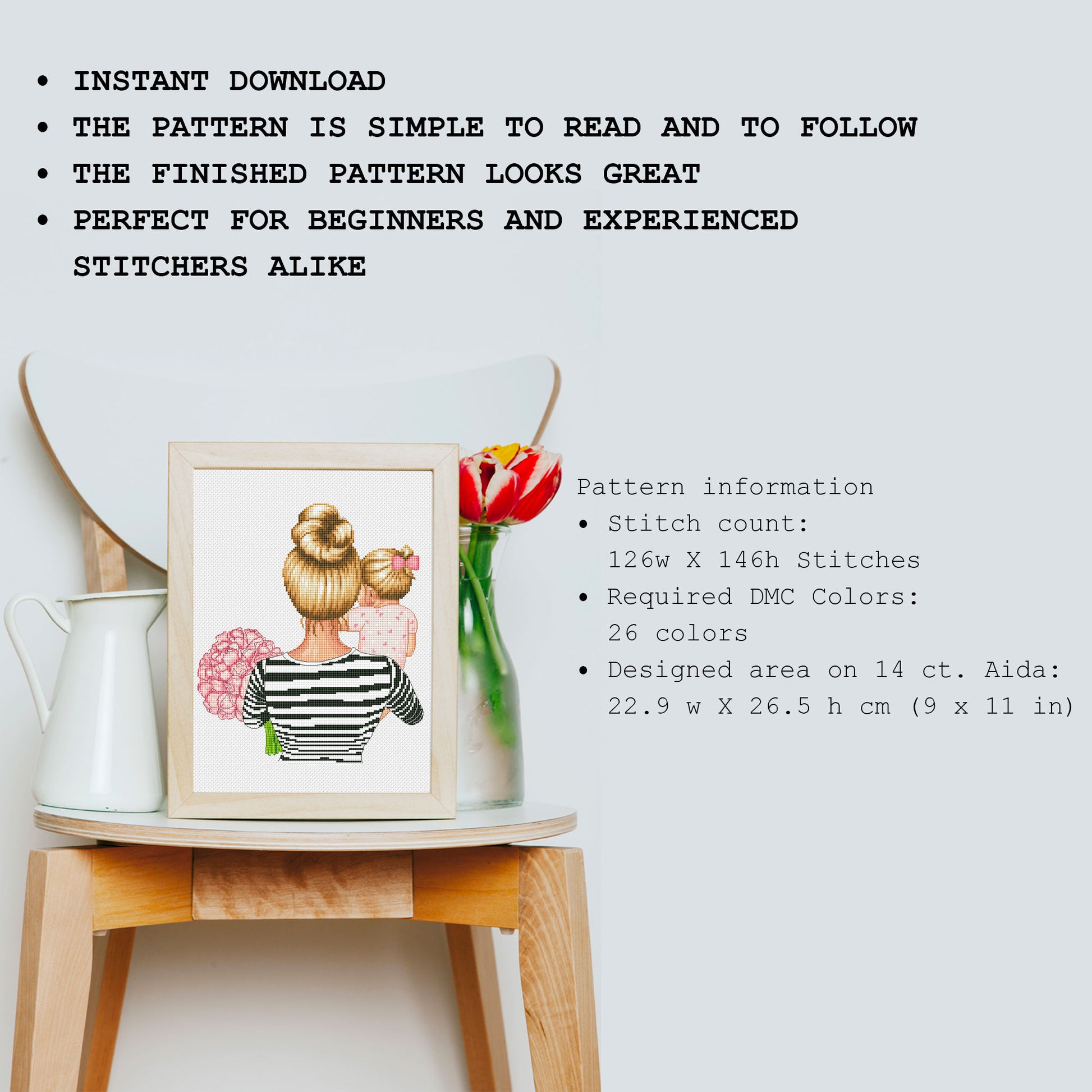 π Create a heartfelt gift with your own hands! This digital cross stitch pattern allows you to stitch a beautiful portrait of a mother with her children. After purchase, you will receive an instant download and can start stitching right away!