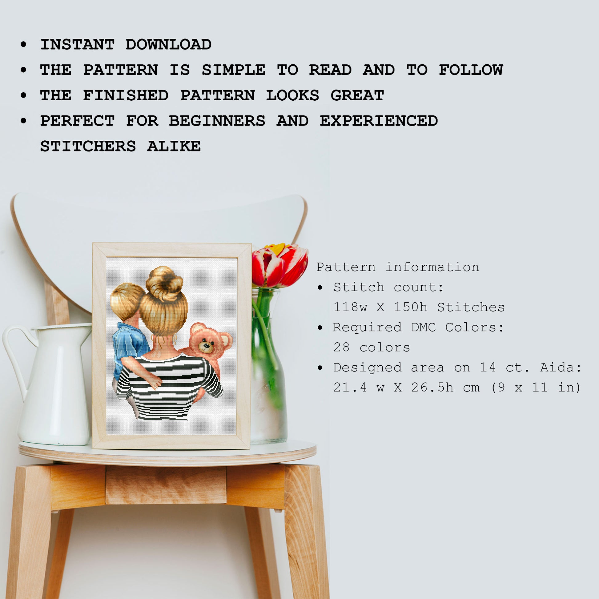 π Create a heartfelt gift with your own hands! This digital cross stitch pattern allows you to stitch a beautiful portrait of a mother with her children. After purchase, you will receive an instant download and can start stitching right away!