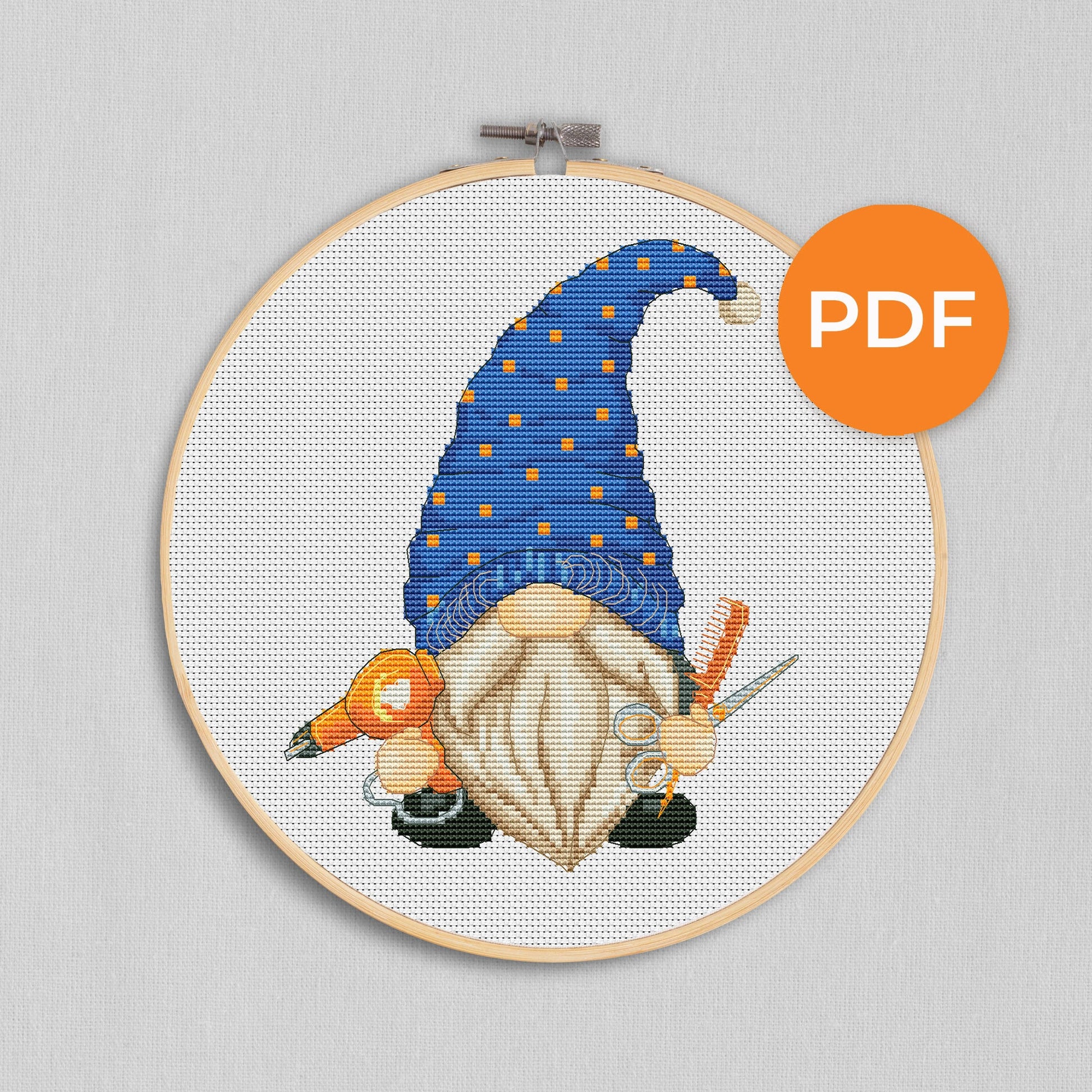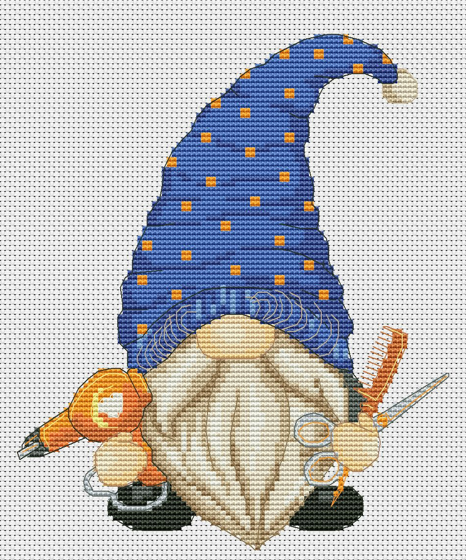 Hairdresser gnome, Cross stitch pattern, Hair stylist, Counted cross stitch, Hair dresser gift, Modern cross stitch