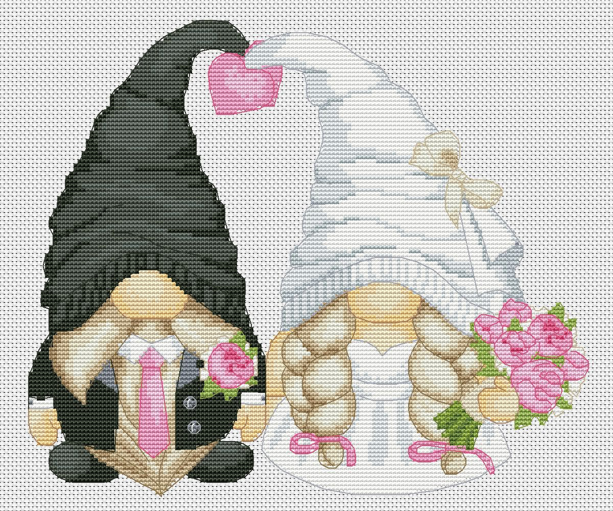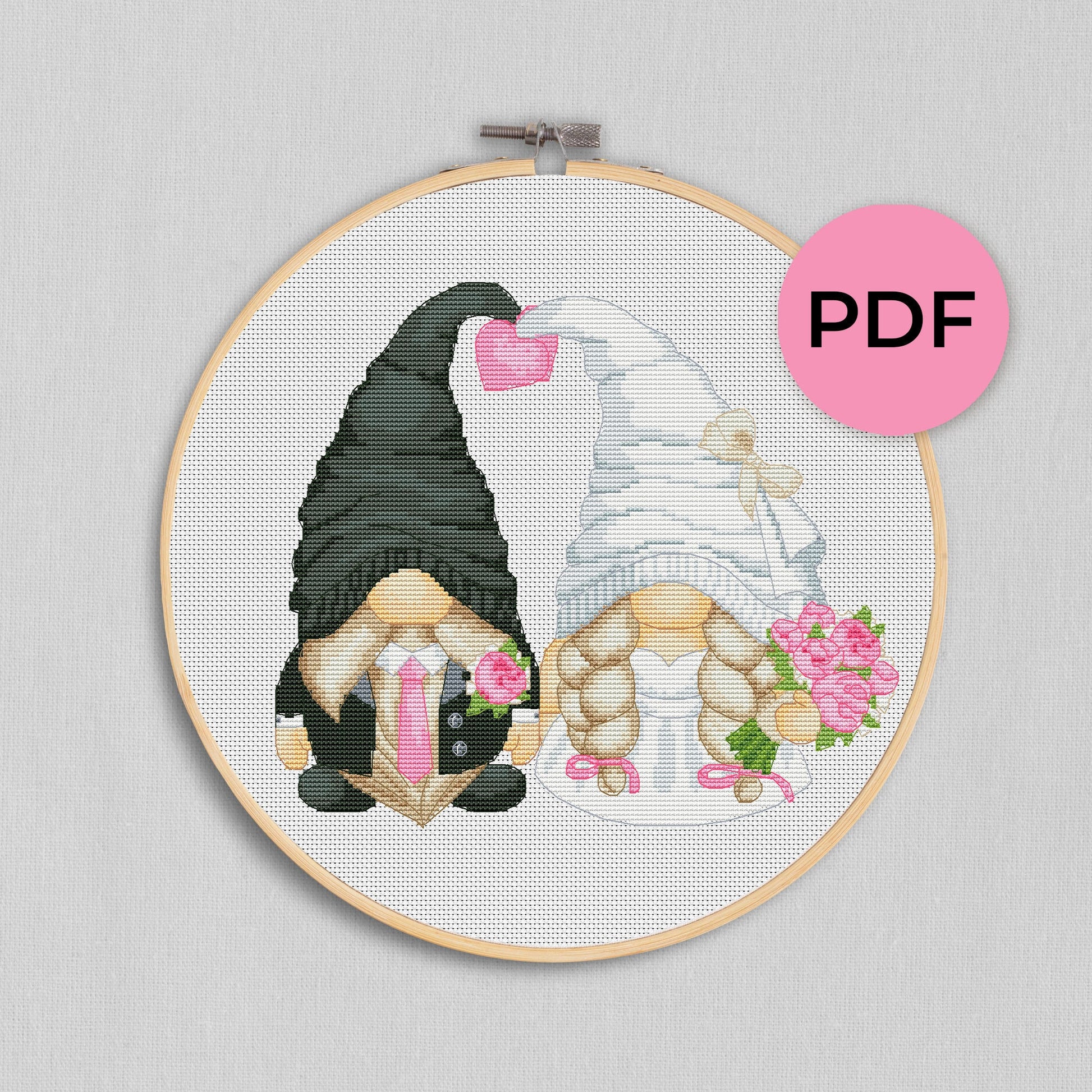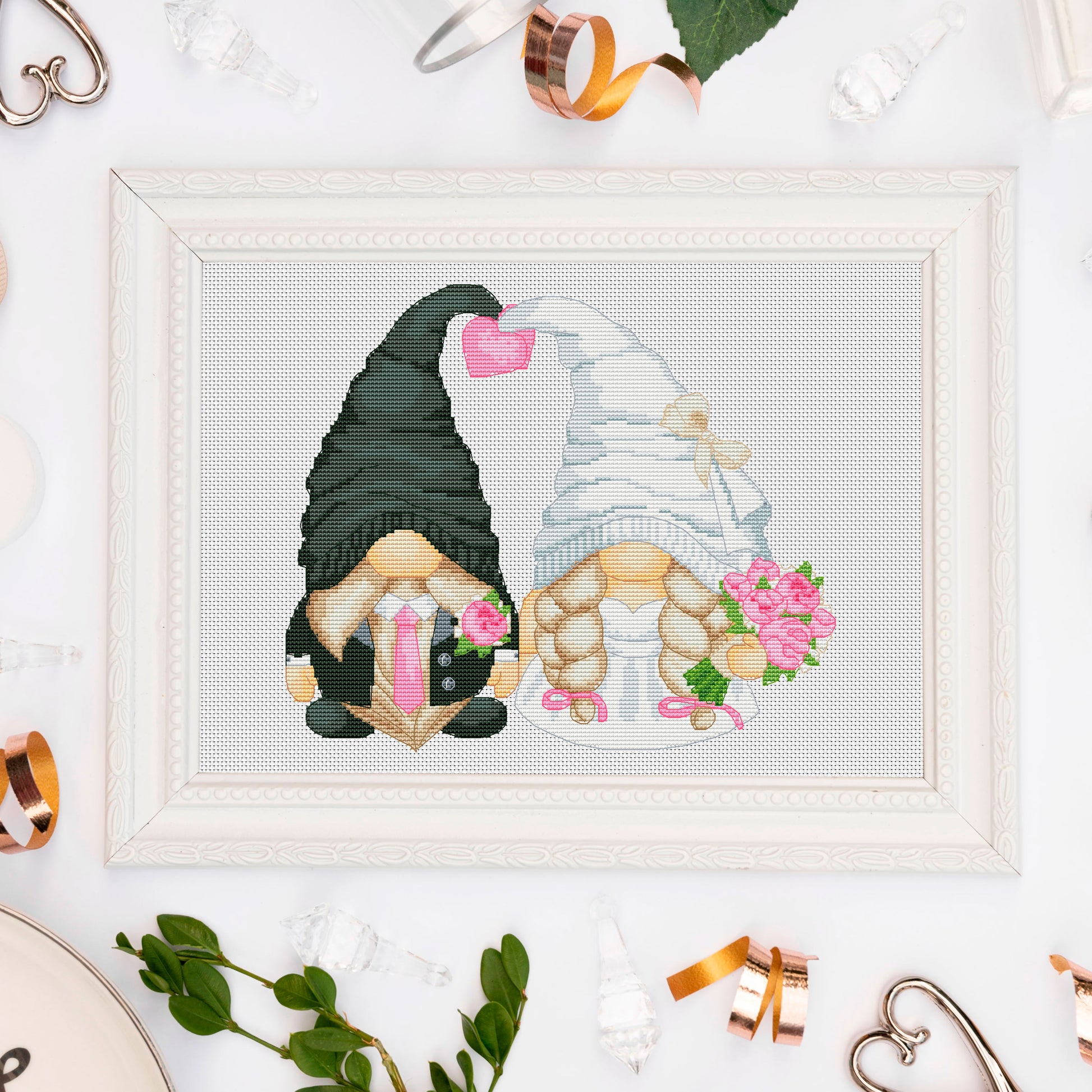 Modern Cross stitch Wedding gnomes, Unique wedding gift