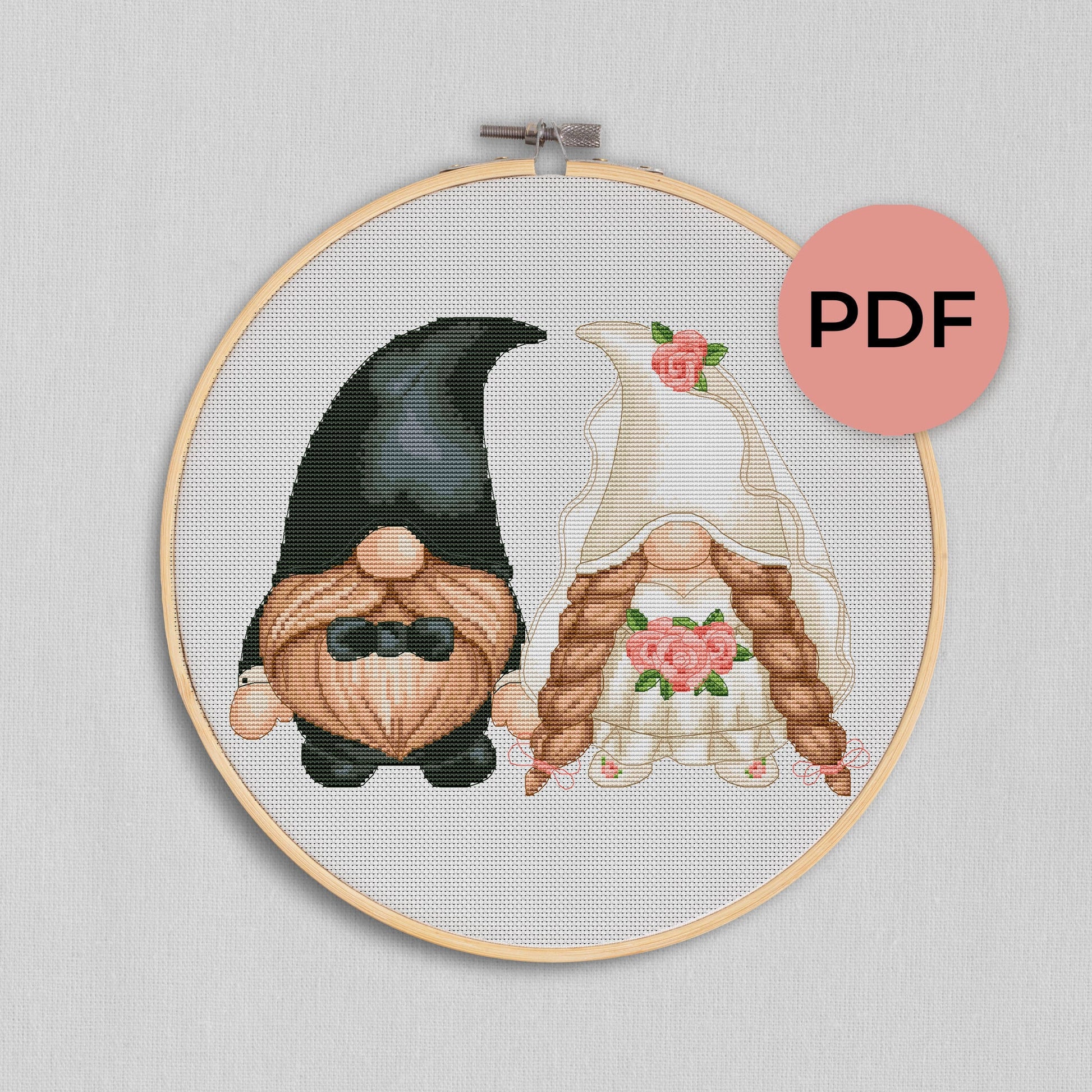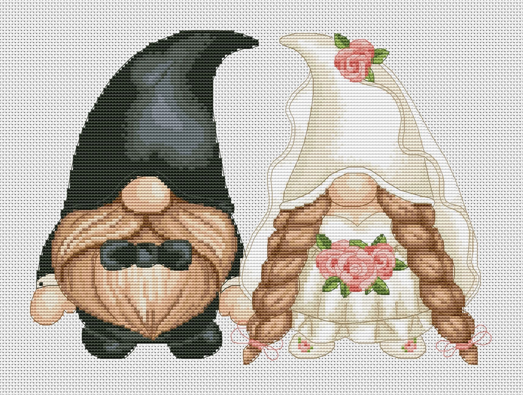 Wedding gnomes, Cross stitch, Wedding cross stitch, Gnomes cross stitch, Modern cross stitch, Wedding gift